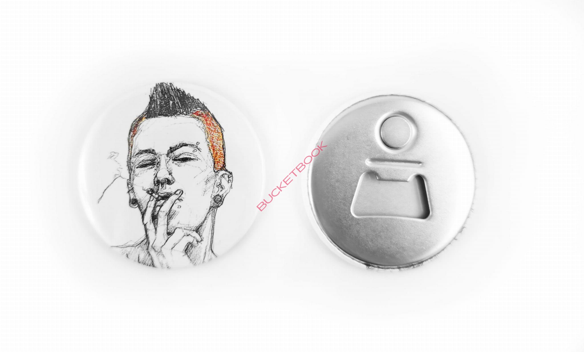 Równocześnie otwieracz jest magnesem! Pięknie prezentuje się na lodówce i znajduje się tym samym bardzo blisko schłodzonych napojów. Na otwieraczu prezentuje się postać Jasona, którego znacie z książek z serii "Fire Dragon Tattoo Studio" oraz "Coś się zaczyna".