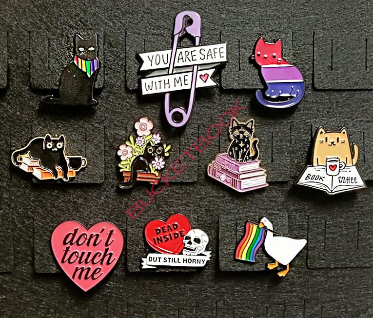 Przypinka, pin, wykonana z metalu i kolorowej emalii. Zapięcie czarne gumowe.