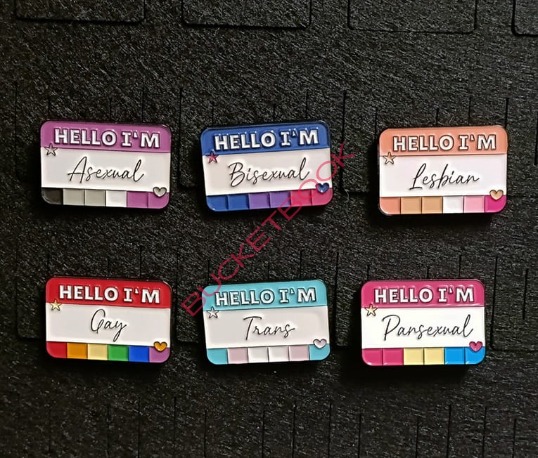 Przypinka, pin, wykonana z metalu i kolorowej emalii. Zapięcie czarne gumowe.
